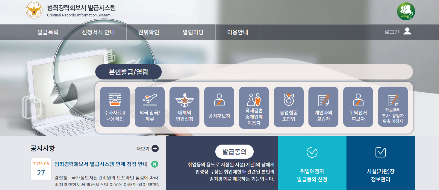 경찰청 범죄경력회보서 발급시스템이란