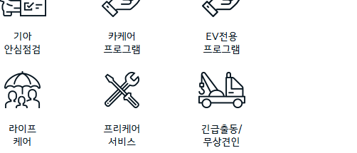 - 1년차: 엔진룸 누유/누수/배터리 점검 등 주요 7개 항목 및 차량 실내 살균 서비스