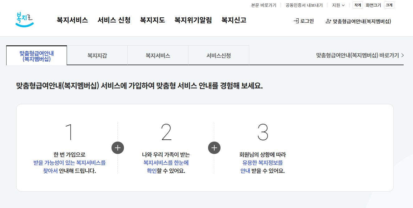 복지로의 핵심 기능 중 하나인 맞춤형급여안내(복지멤버십)는 개인의 상황에 맞는 복지서비스를 추천해주는 서비스입니다. 주요 특징은 다음과 같습니다: