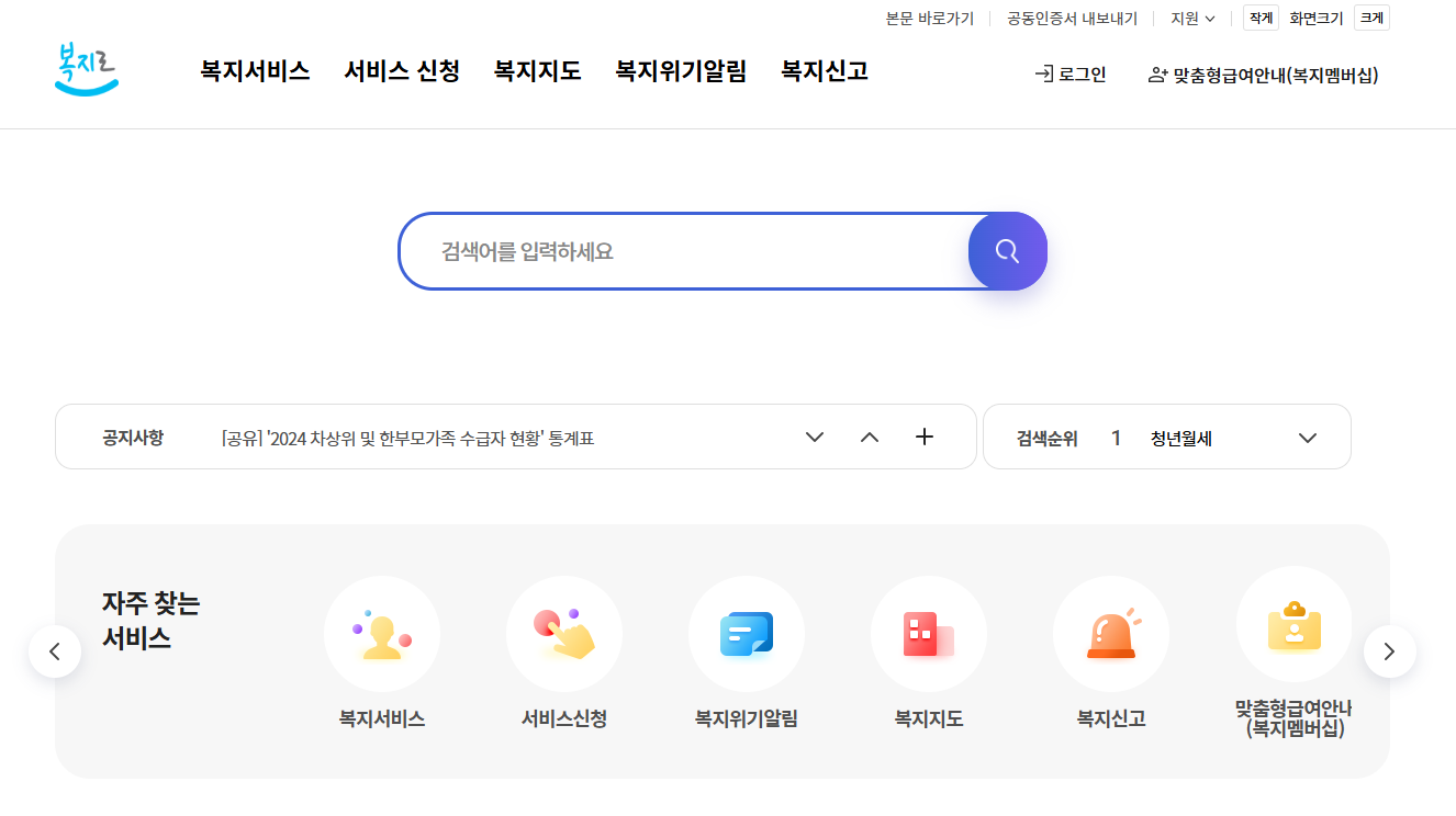 - 복지서비스 찾기: 간편 검색 및 통합 검색 기능